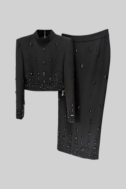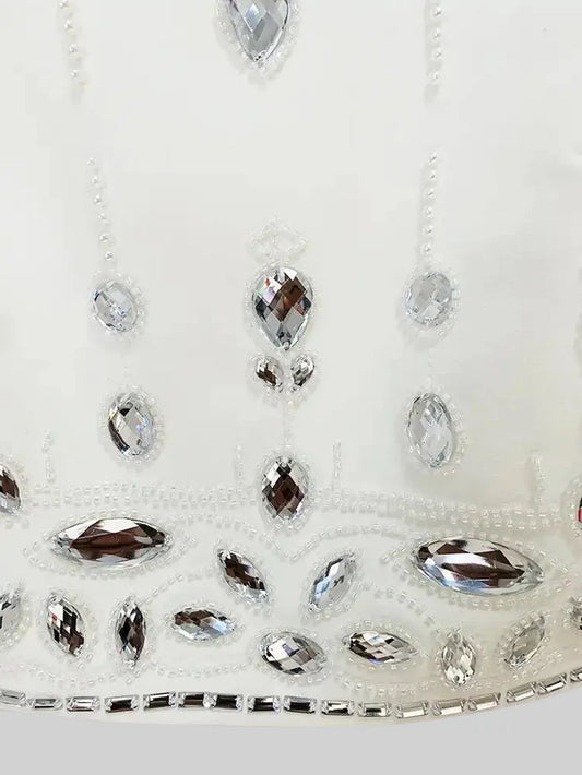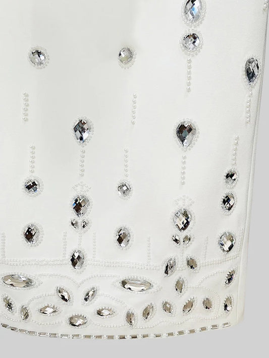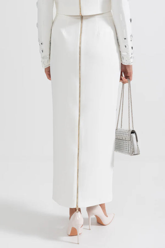 Diamond Embellished Co-Ord with Maxi Skirt - White