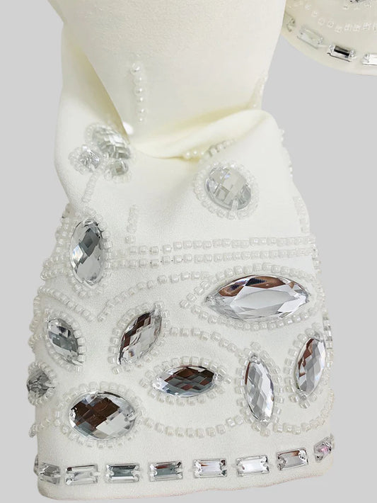 Beyaz İki Parçalı Elmas İşlemeli Eşarp