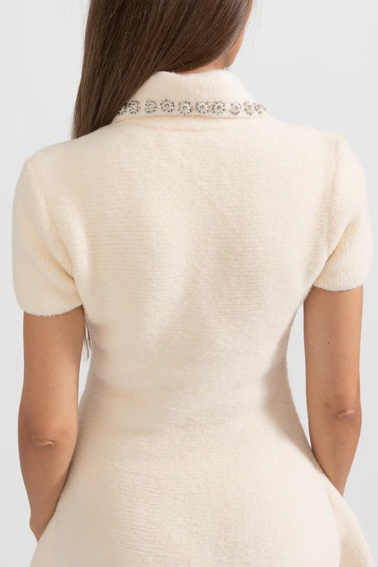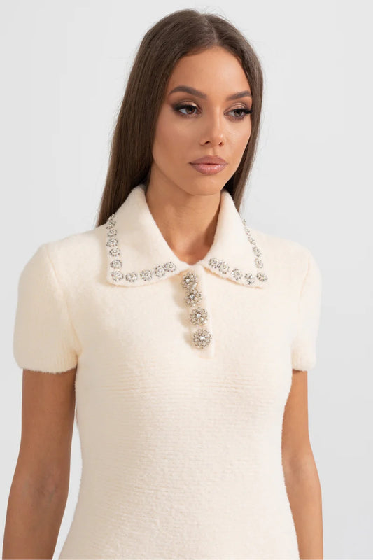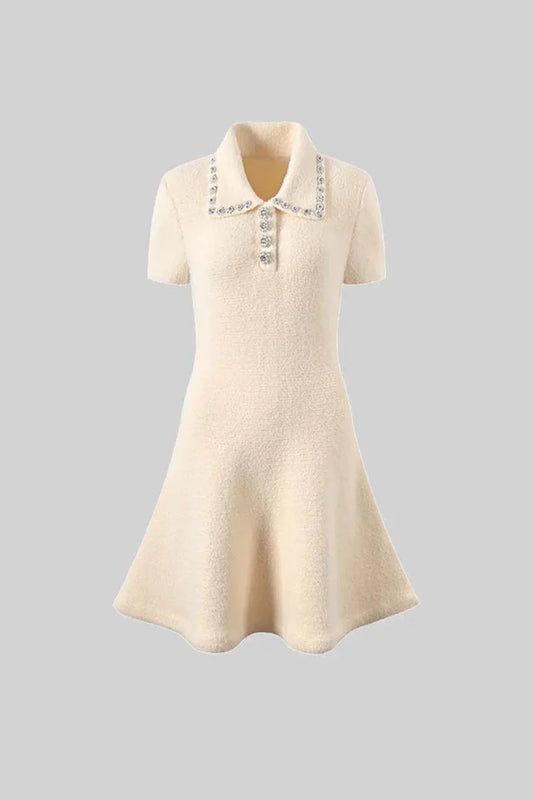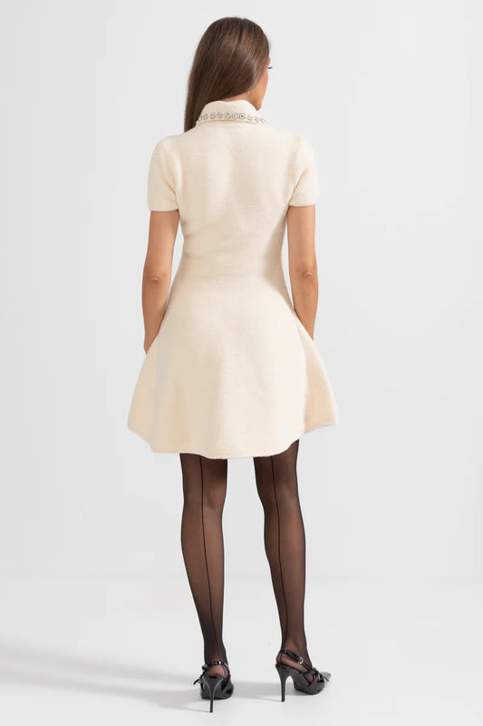 Fildişi Zarif Yumuşak Kısa Kollu Elbise