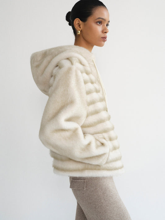 Faux Fur Hooded Jacket, Natural