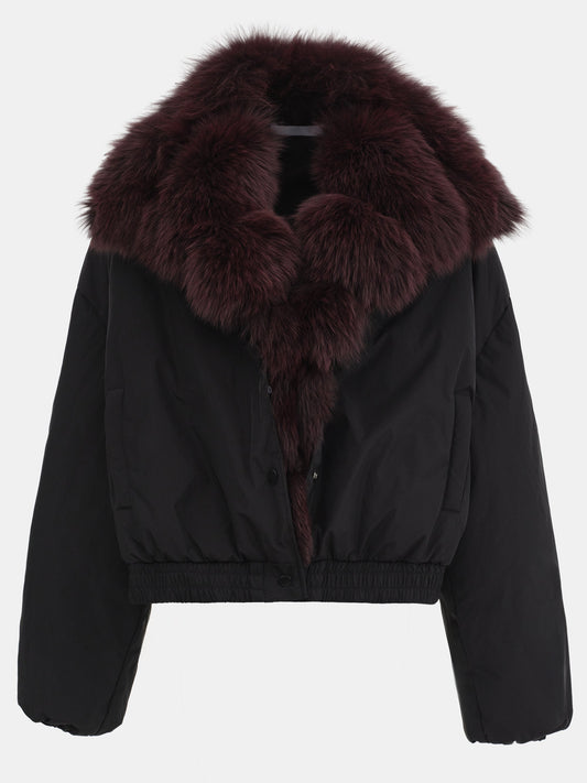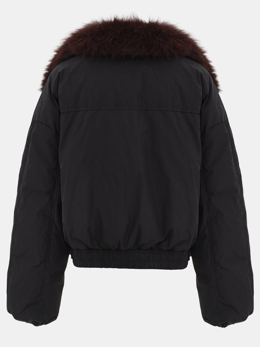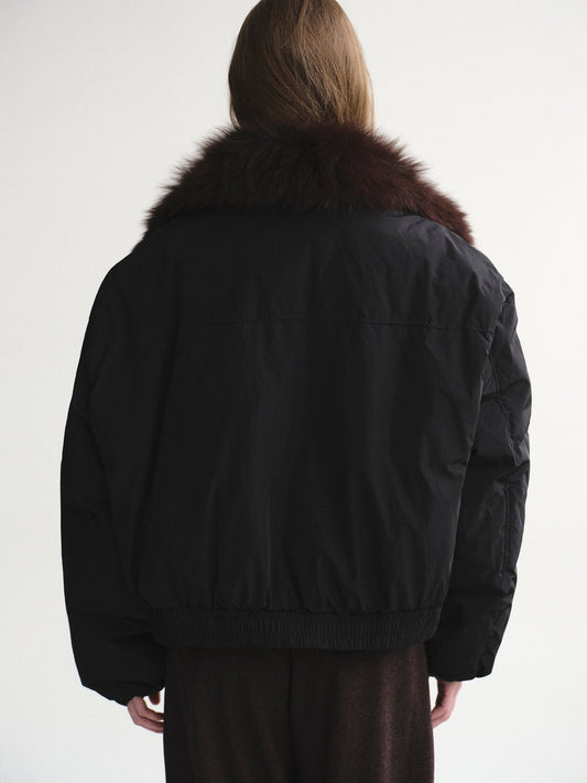 Das Model ist 176 cm groß und trägt Größe S. 100% Polyester. Futter: 100% Polyester. Füllung: 100% Gänsedaunen. Abfallende Schultern. Offener Kragen. Abnehmbares Echtpelzdetail am Kragen, das mit einem Knopf befestigt werden kann. Seitliche Nahttaschen. Druckknöpfe. Elastische Manschetten und Saum. Vollständig gefüttert.